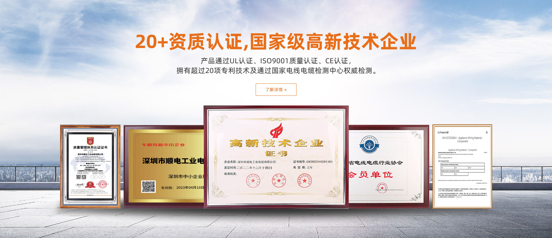 國家級高新技術(shù)企業(yè),產(chǎn)品通過UL認證、ISO9001質(zhì)量認證、CE認證,擁有超過十五項專利技術(shù)及通過國家電線電纜檢測中心權(quán)威檢測。